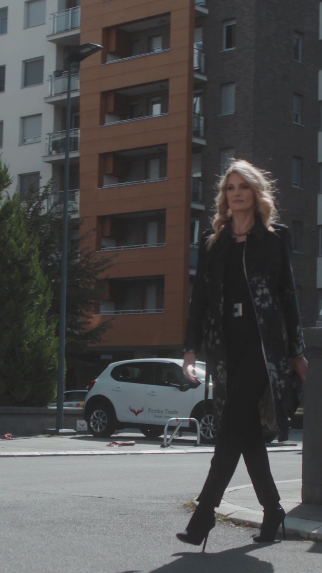 The Emma Light Coat brings an artistic touch to transitional dressing. Crafted from a refined jacquard fabric with subtle metallic threads, it features a black base enriched by teal floral patterns that shimmer softly under the light. The tailored silhouette, complemented by a self-tie belt, flatters the figure while allowing easy movement and comfort.