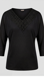 The Top Jody in Black drapes gracefully over the body, combining a tailored, structured silhouette with ease of movement. Delicate lace detailing at the neckline adds subtle depth, making it a versatile piece that transitions seamlessly from polished daytime looks to evening sophistication.