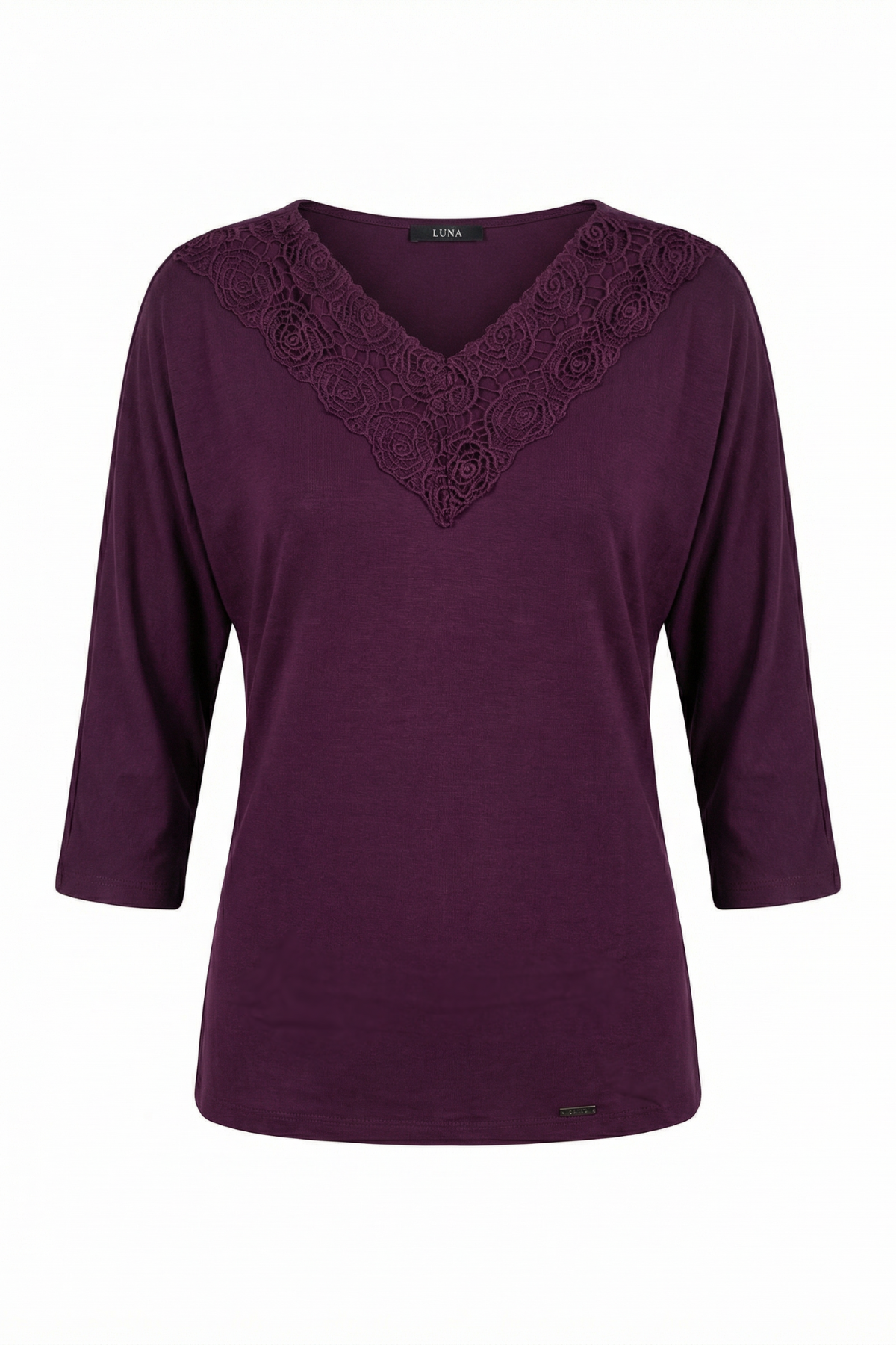 The bordeaux lace elegant blouse from Luna Fashion House embodies European artistry and modern femininity. Crafted from viscose, it delivers comfort with refinement. Designed with 3/4 sleeves and a V-neck neckline. Ideal for evening occasions, galas, and special celebrations. Elevate your wardrobe with the Top Jody in Bordeaux, a truly exquisite piece that embodies confidence and refinement. Crafted from a soft viscose blend, this blouse drapes gracefully over the body, providing unparalleled comfort with every movement.