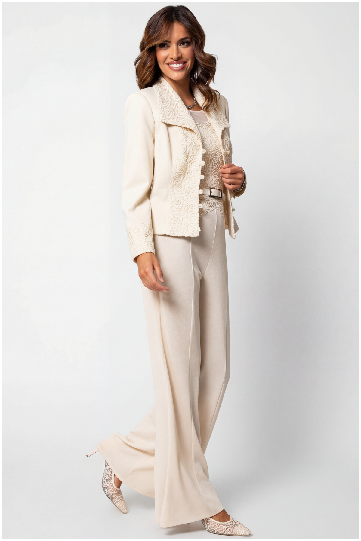 This tailored blazer offers a fitted silhouette and a standard length, perfect for those who appreciate refined craftsmanship. Designed for women who value couture-inspired details, the Blazer Jody is a celebration of quiet luxury and European elegance. Style it with the tailored Luna trousers for a chic monochrome look or drape it over a silk dress for a touch of elevated sophistication at a gala soirée. Transform your ensemble with this limited-edition masterpiece, where every detail has been meticulously considered. Each ivory lace tailored blazer is produced in limited quantities to preserve exclusivity and individuality. The ivory lace tailored blazer complements capsule wardrobes, pairing effortlessly with other timeless pieces. With every wear, the ivory lace tailored blazer reflects confidence, elegance, and quiet strength. The ivory lace tailored blazer is designed to be worn season after season. The ivory lace tailored blazer is designed to be worn season after season.