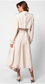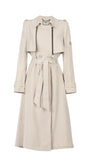 The Kim Classic Long Coat in Beige speaks the language of quiet confidence. It is crafted from a refined European technical weave in premium microfiber polyester, offering a soft drape, subtle sheen, and everyday durability. The long, tailored silhouette flows elegantly as you move, while the self-tie belt defines the waist, creating a feminine silhouette. A decorative zipper on one side adds a modern note without disturbing the timeless lines. The full-length cut brings comfort and warmth during transitional weather, and it layers beautifully over dresses, knits, and tailored trousers. From weekday meetings to relaxed weekends, this coat delivers effortless elegance in every setting. It is crafted in Europe with attention to detail and made to live in your wardrobe for many seasons.