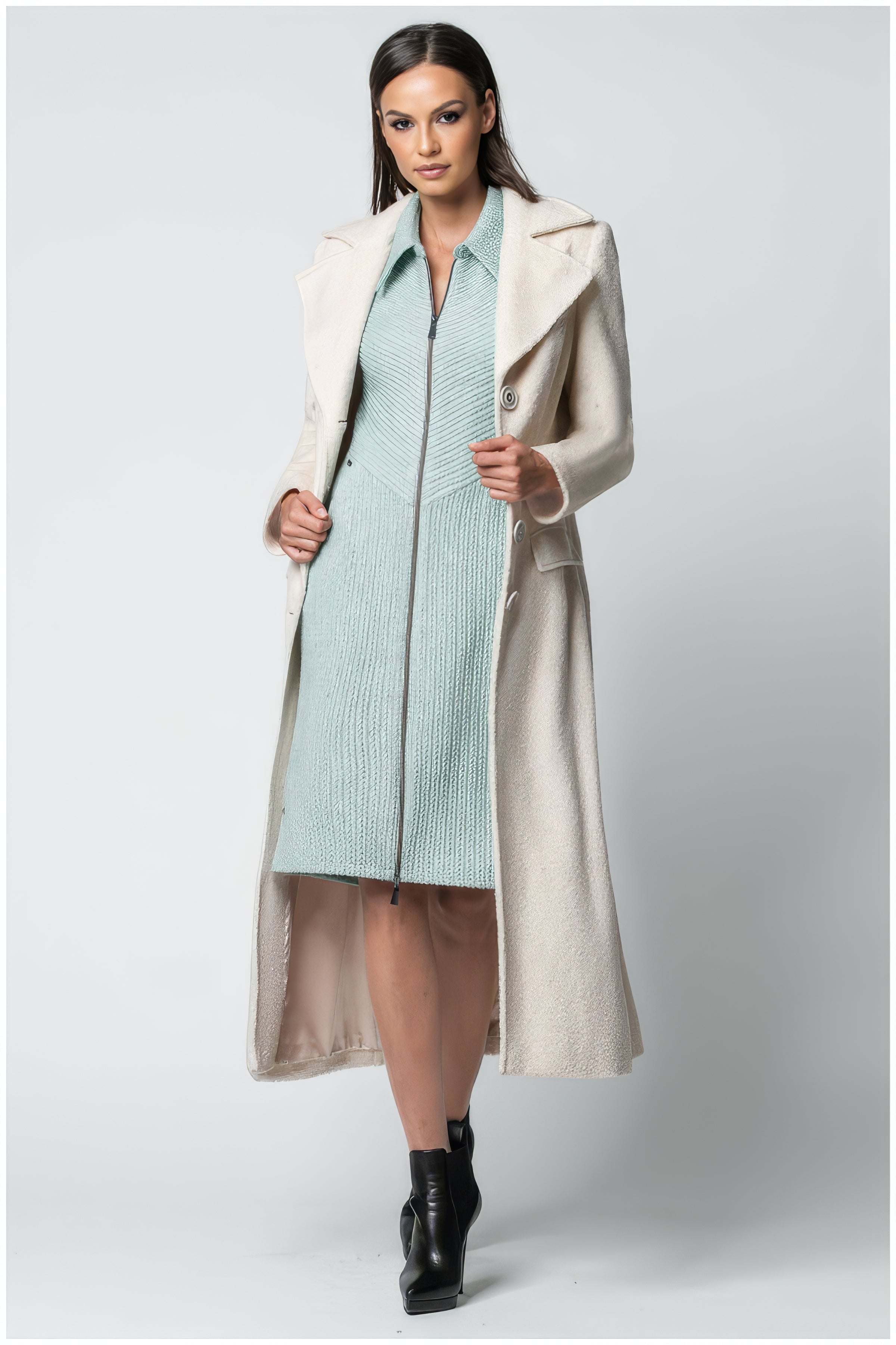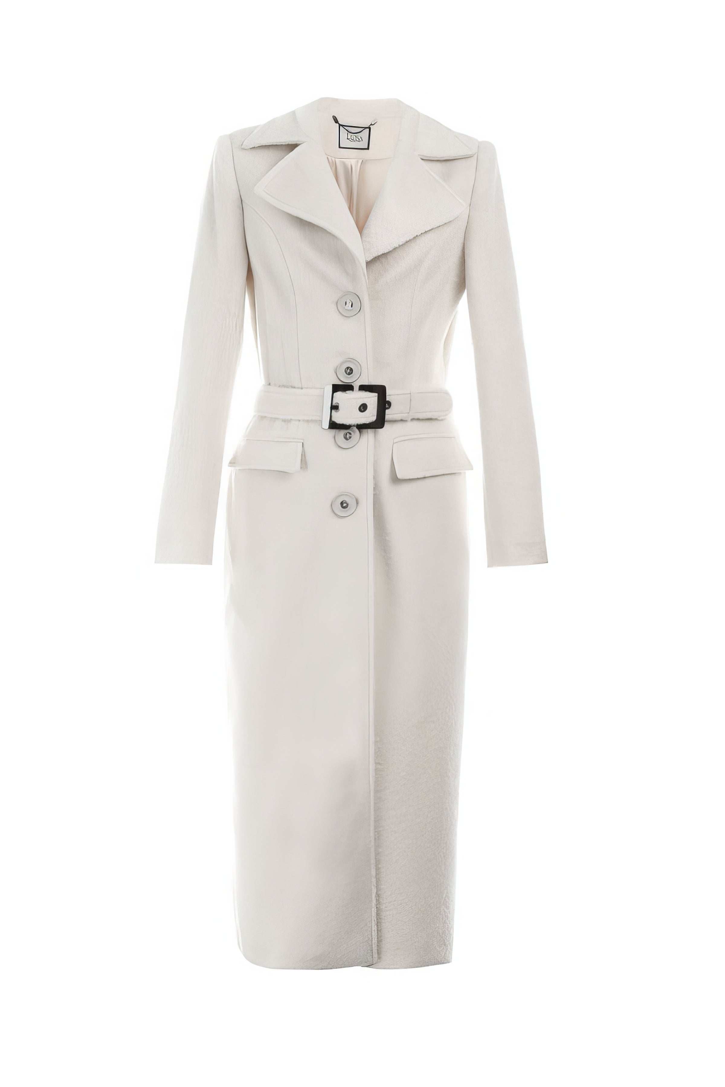 The Linea Belted Midi Coat in Ivory brings poised elegance to colder days. Cut in a body-skimming silhouette with gentle structure, it defines the waist with a statement belt and flows to a refined midi length for graceful movement. The tailored lapel, flap pockets, and clean button front create a polished finish that layers effortlessly over knitwear, dresses, or suiting. Crafted from smooth premium polyester for a soft hand and lasting shape, Linea balances warmth, comfort, and impeccable style, an instant classic from day to evening.