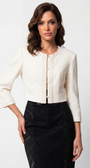 The tailored blazer from Luna Fashion House embodies European artistry and modern femininity. Crafted from breathable botanical fiber fabric, it delivers comfort with refinement. Designed with long sleeves and a round neckline. Ideal for evening occasions, galas, and special celebrations. Elevate your wardrobe with the exquisite Jacket Lola, designed to instill confidence and polish. This elegant cropped blazer showcases a structured silhouette that beautifully enhances your figure, crafted from a premium breathable botanical fiber fabric blend with elastane for a refined fit.