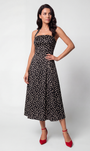 The black elegant midi dress from Luna Fashion House embodies European artistry and modern femininity. Crafted from satin, it delivers comfort with refinement. Designed with sleeveless sleeves. Ideal for evening occasions, galas, and special celebrations. Introducing the Melissa Satin Midi Dress, a stunning embodiment of elegance and confidence. Crafted from luxurious satin, this dress drapes beautifully to enhance your silhouette. The corset-style bodice sculpts the figure, elevating femininity, while the modern black-and-ivory polka dot print adds a contemporary twist.
