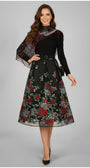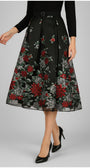 The Regina Embroidered Midi Skirt in Noir Garden captures timeless femininity through its elegant floral motif and graceful volume. Crafted from rich European jacquard with metallic thread detailing, it offers a soft shimmer with every movement. The A-line silhouette flatters the waist and flows effortlessly, creating a romantic and refined look. The skirt is finished with a delicately embellished belt that cinches the waist, adding a touch of structure to the airy, full shape.